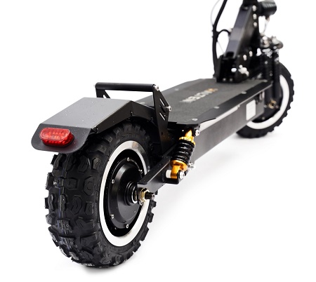 Использовать транспорт в мокрую погоду позволяет новый протектор, который отлично сцепляется с дорожным полотном, а также заводская гидроизоляция и антискользящая дека. Колеса диаметром 11 дюймов оптимальны для городской среды, 2 мотор-колеса мощностью по 1300 Вт помогают как следует разогнаться. Подвеска со стильной красной подсветкой обеспечивает плавное передвижение даже по грунтовым дорогам. Также предусмотрено место для установки сиденья.