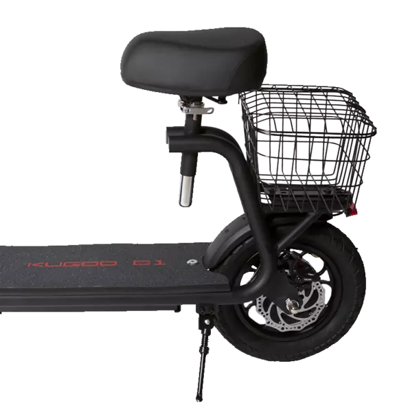 - Багажная корзина также съёмная. Зачастую при езде на электросамокате нужно взять с собой какие-то вещи, и спасал только рюкзак. На Куго С1 можно освободить себя от багажа и сложить его в багажник.