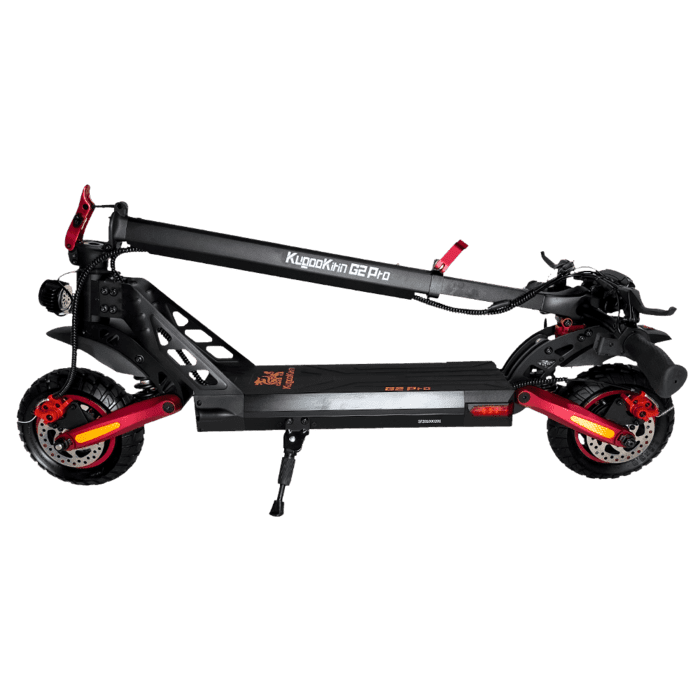 Kugoo G2 PRO 15 Ah Jilong имеет широкую деку с силиконовым нескользящим покрытием (42 см на 26 см). Есть удобная подножка. Колеса надувные, большого диаметра. Они создают высокий клиренс – расстояние от нижнего края деки до земли 21 сантиметр. Если вы ищете электросамокат «вездеход», проходимый, мощный (двигатель в целый киловатт), с большим запасом хода, то Kugoo G2 PRO 15 Ah Jilong подходит под все вышеперечисленные требования! Можно также упомянуть среди особенностей и преимуществ тормозные огни на заднем крыле и очень громкий звуковой сигнал, почти как скутере. А также облегченный механизм складывания.