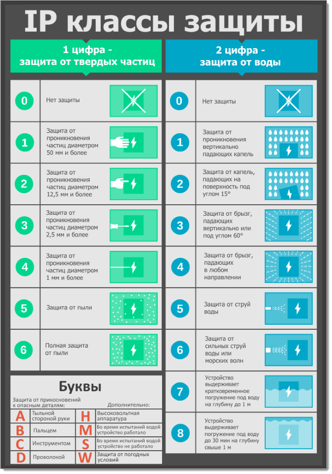 - Защита класса 8 предполагает, что устройство будет работать в полностью погруженном состоянии длительное время. Если вместо какой-либо из цифр пишется X - это означает, что защита от данного воздействия не тестировалась.
